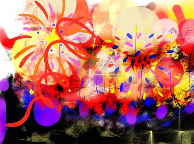 夜空を飾る夏の風物詩、花火。と言われてすぐ頭に浮かぶのは???小生の場合はやはり少年期に見た東京隅田の花火。もう今は各地で大小さまざまな規模で行われていますが・・・昔のシンプルとは違って、いまは打ち上げにもコンピュターを利用しているようで、夜空に描かれる花の容もいっそう嗜好をこらしたものに。先日横浜で行われた花火大会は花火打ち上げの船台火災事故で中止になりました。残念でしたが事故原因は打ち上げ制御関係にあるようで・・・???PC音痴の老人が無料ソフトでらくがきしました。