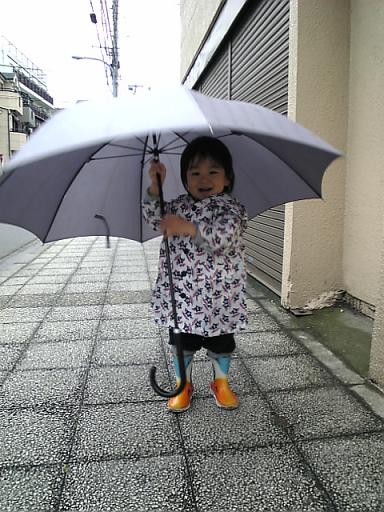 今日は小雨がパラパラ時折晴れ間が見えたりしてたんだけど、私は全く外に行くつもりなんてありませんでした。笑。ストックしてあるスニーカーがそろそろ履けるかなぁ~なんて蓮の足に合わせてカワイイ~~とかやってたら、どうやら靴を履いたから外に行くと思ったらしい…私の手を引っ張って押入れまで連れて行き、着替えろ!と言わんばかりの目…(押入れ収納なので洋服は押入れにある。)えぇぇ~~~~面倒臭いよぉ~~~でももう行く気マンマンになっちゃてて「っこ!っこ!(いこう。)」ってさぁ…言うもんだから渋々着替え、日焼け止めは流石に面倒でイヤだったからファンデだけささっとはたき…。蓮のカッパと折り畳み傘を持ってダル~く出発~~~~苦笑。いつもの公園、当たり前のように誰もいません。でも蓮は水溜りに枝を投げ込んだり、泥をグチャグチャやったり何か楽しそう…すぐにハッと気付いた私、「あ!水溜りに入られる!!」と思った瞬間、やったねコレ…。苦笑。幸い浅い水溜りだったので靴と洋服にあまり被害が無かったので、すぐに手を洗って帰宅 うっかりいつものスニーカー履かせちゃったのでレインシューズに履き替え、再び出発~~(徒歩3分。笑)折角カッパとか用意したのに長靴まで思い出せなかった公園に着いて、さ~今度は思いっきりやっていいよぉ~って蓮の背中押してあげたのに、何故かベビーカー押して出口の方に…。なんじゃそら…一回ウチに帰ったから気分が冷めたか…?でもまあ帰るんならいいやぁ~って思いながらゆっくり帰宅。雨がパラパラ降ってきたので私が傘を差したら蓮くんが横取り!イエ~イ超うれしそう。笑。傘差したまましゃがんで「ないな~い…」「ばぁっ!!」ってジャンプ!↑これはジャンプしたところ。傘が大きすぎて、大人の目線からだと蓮の足しか見えないからかなり笑えましたもう傘差せるんだ~。少し前まで、まだちゃんと頭の上に差せなくてブンブン振り回してる感じだったから、ちょっと成長を感じました。実はもう傘とか買ってあるんです。ユナイテッドアローズに行ったら、たまたま子供服とかもセールになってって↑コレを発見!!かなり可愛くて一目惚れでした私的にはピンクのネコちゃんがとってもお気に入り長靴はどちらか一個に絞りきれず、サイズ違いで購入。(セールじゃなきゃ買えない。苦笑。)傘もほんとはネコちゃんが欲しかったんだけど、幼稚園に行ったら女の子もいるからさすがにピンクは止めようかな~と思ってワンちゃんにしました。と言うか、長靴2足で予算オーバーだったので傘は姉が買ってくれました最初傘には気付かなくて、お会計してる時に姉が傘もあるよ~って持って来たんです ナニ~~?!!「うぅぅ……。買って…??」っておねだりしたら笑いながら買ってくれた…f(^▽^;)姉もセットの方が可愛いと思ったらしいです。蓮くんもこの傘はお気に入りです。しまうと泣いて怒るくらい…(´▽`;)ちゃんと傘差せるならいよいよワンちゃんの出番が来ますねレインコートは今ピッタリだから大きいの買わないと大人からしてみれば雨の日に出掛けるのは面倒だけど、子供は雨は雨でいつもと違う遊びを見つけるから楽しいのかも。あぁ~何か傘とか出したら少し楽しみになってきたお気に入りのレイングッズで雨の日が待ち遠しいのはどうやら子供だけで無く、親もみたいです…笑。