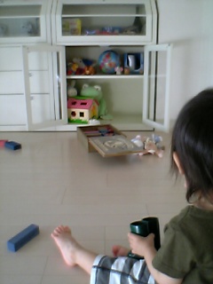 この小さなキャビネットには蓮クンのおもちゃがしまってあって、遊びたいと私の手を引っ張って「扉を開けろ」とここまで連れて行かれます開けてあげると好きなの取り出して大人しく遊んでくれます遊ぶ、遊ばないに関係無く、積み木のフタは必ず開けないと気が済まないらしい…↑笑。今日はお気に召したようで積み木で遊んでました。その間私はテレビを見てて、やけに大人しいな~と思って振り返ってみたら…蓮クンがキャビネットにしまわれていた!!オイオイ、何やってるんだね君は…中で暫くゴロゴロして落ち着いちゃってるの。しかも器用に中から扉を閉めちゃって、「げっ!危ない」っと思ったら、足でドカーンと蹴ってちゃんと開けていたここ以外にも、洗面台の下の扉もロック外した時に入り込んでニヤ~っと薄笑いでタオルぐちゃぐちゃにして遊んでるんです…苦笑。これも狭い所が好きの一種なのか??ドラえもんじゃないんだからさぁ~。ハッ!?そう言う自分も子供の頃押入れに入って遊んでたわ…。しかも押入れで寝るとか言って、布団の間に挟まって昼寝しちゃって姿が見えないと母が心配して探して怒られたような記憶が…ほんと子供って変な所が好きなんだね~。苦笑。