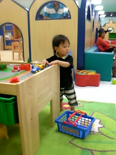 昨日は旦那の連休が最後の日だったので、ボーネルンド・あそびのせかい(横浜みなとみらい)に行ってきました~土日は混むから本当は平日がいいんですけどね~。案の定、激混みでしたよ。いつも平日に行くので、人の多さに蓮クン戸惑い気味でした。苦笑。 どうしよう、どうしよう…キョロキョロ。 お料理でもしとこっ写真には他のお客さん写ってませんけど、実際はちょっと歩くと誰かにぶつかるくらい人が多かったんです。大人も一緒だからね~余計狭く感じますよ。よいしょっ、よいしょっ滑り台を階段じゃなくて、坂の方から一生懸命登ってました~。一番上まで行ったかと思いきやいつもココで↑力尽きて、ステーンと転がりながら落ちて行く…笑。これは大好き、サイバーホイール見つけるとすぐ走り寄って乗りたがります。機嫌良く乗ってたのに、お父ちゃんにゴロ~ンとひっくり返されて半ベソ…もうイヤなんだって。体が沈んで動けないからイヤなんだって。笑。ボールプールは大人のヒザくらいまであるからちっさい子供は全然歩けないですよ。ハイハイしてもどんどん沈んでいく…。見てる方はその姿がかなりウケるんですけどね。今回は何か気分が乗らなかったみたいで1時間程で出ました~。いつもはきゃいきゃい動きまくってたんですけどねぇ。日曜だから大きいお兄ちゃんお姉ちゃんがいっぱい騒いでて怖かったのかも…。12歳までだったかな、入れるの。平日は蓮くらいの0~2歳くらいの子がほとんどです。って当たり前か。幼稚園や学校に行ってない子しかこれないもんねf(^o^;)やっぱり平日に来た方が良さそう。ちょっと失敗だったな。お詫びにショップでおもちゃ買ってあげました。リアルすぎてキッチンにあっても違和感ナシ!?笑。ブラウンのケトルのおもちゃです。電池入れるとブラウンのロゴの下のランプが赤く光ってコポコポコポ…とかお湯の音がしたり、フタも開いたりとなかなかご立派私は同じシリーズでアイロンかトースターの方が欲しかったんですけど、蓮はコレが気に入ったようなので…。また今度きたら買えばいいしね。で、連休が終わった旦那は「頭痛い…」とか言ってました。登校拒否と同じですよ。苦笑。私は世話する人が一人減って楽になったけどねぇ~(←鬼嫁?)