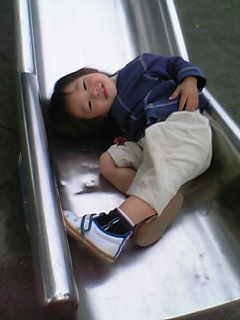 蓮クンは滑り台が大好きです今までは私が抱っこして上の方に乗せて滑る感じだったんだけど、いつもお兄ちゃん達が階段を上って行くので興味が出たらしく階段にチャレンジしてましたもちろん普通の階段は一人で上れるけど、滑り台の階段って角度が急なうえに足を置く所が狭いじゃないですか。だから登ろうとしても足を上手く置けなくて踏み外してヒザを擦り剥いてたんだど、今日は気が付いたら一人で上まで登っててスルーっと滑って降りてきた!できたぁ~ いつも私が蓮の後ろについて落ちないように見てたからうれしいけどビックリしたよぉ~!でも2回目の時に3段目くらいの階段踏み外して下までガクーンと落ちたからビックリして泣いてた…苦笑。怖くならないように泣き止んでからすぐ階段に行かせたんだけどショックだったのか登らなかったですまぁ明日には忘れてるよね。ぷぅ~~ この後ジャングルジムも一生懸命足あげて登ろうとしてた。笑。全然身長足りてないから無理なんだけど気持ちの上では登ってるみたいそうそう、幼稚園、もう一人の子も無事面接で合格したみたいです~!定員20名だったんだけど、来たのが22名だったそうで全員合格結局、A幼稚園とB幼稚園とか2つ掛け持ちの人が多いから倍率も上がっちゃうみたいで、終わってみればどこの幼稚園もほぼ定員通りで丸く収まった(?のかな…?)みたいです。でもギリギリだよね…旦那はやっぱり学年が1年ズレてたみたい…来年の秋は入園準備なんだよ?って言ったら「2歳でうけんの??!」って。だって蓮クンは3月産まれだから、来年の3月に2歳だけど4月からみんなは3歳になるんだよ~。蓮クン今1歳半だけど2歳の学年だよ??って説明したら、「あ…そっか…(@_@;)」だってぇ~。私の必至さがようやく判ったみたいで良かったデス…。苦笑。