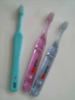 今日は保険センターへ 歯みがき教室 に行ってきました。1歳6ヶ月検診で歯科検診&虫歯菌の検査をして、蓮は虫歯も無く、なりかけてるのも無かったんだけど、酸を出す虫歯菌がいたみたいなので保険センターから「歯みがき教室のお誘い」のハガキがきてました。強制では無いので行かなくてもいいのかも知れないんだけど、この教室に参加した人は、今後3歳児検診まで歯の定期健診をやってくれるそうなので、それはラッキーかも♪と思って行く事に来てる人少ないかな~と思いきや、2、30人くらいの子供が来てました。歯科衛生士さんも「今日は予想以上に沢山来てくれました~」とか言ってたし…笑。最初は衛生士さんの虫歯についてのお話。当然子供達は聞いてるハズも無く、子供同士でおもちゃでワイワイ遊びお母さん達は話を聞いてフムフム、と言った感じ。そのうち遊ぶのにも飽きてきた子供達がグズリはじめ話を早々に切り上げて、お歌遊びが始まりました。良く覚えて無いけど、ピクニックに行く歌でお弁当にハンバーグ、ベーコン、パイナップルを持ってきたから食べましょうって感じで、歌に合わせて手をグーパーしたり頭に乗せたりしてました。で、歌が終わったら「ご飯を食べたら歯みがきしようね~」って少人数に分かれて歯みがきが始まりました。ひとつの班に一人の衛生士さんが居て、子供一人づつ歯を磨いていきました。蓮はイヤがって結構無理やり歯磨きされてたな…苦笑。半分くらいの子供がグズったり大泣きしてましたどこの家も大変なんだな…と実感する光景でした。蓮は自分で歯ブラシ口に入れるので、歯ブラシを握ってる手を一緒に持って「シャカシャカシャカ♪」とか言いながら手を動かして磨いてます。なので、衛生士さんに頭押さえつけられて、唇めくられて歯みがきされたのが凄いイヤだったみたい。私も最初は衛生士さんみたいにちょっと無理にやってしまってたけど、これじゃ嫌いになる一方だから自分で口に入れさせて一緒に磨く方法にしたんです。それでも磨かせてくれない時もあるので、そう言うときは口の横から歯ブラシを入れて奥歯から前へ磨くといいらしい。口の正面、前歯の所から歯ブラシ入れられるのは結構怖いんだって。あと、今日は機嫌悪いとかで口を開けてくれないから出来ないとかもダメだって必ず毎日やるように、やったりやらなかったりすると子供が迷うからグズってもやるようにとの事。歯みがきとは関係無い時間に、遊びで「い~」とか「あ~ん」とかやらせて、顔を触ったりする遊びをしてると口を開けてくれようになるみたい。蓮も最初は歯みがき好きだったのにな~。ちゃんと歯のウラとか隙間とか磨くようになってきた頃から凄いイヤがるようになっちゃって大変でした。最近はまた自分でやってくれるようになったから良かったけど虫歯心配だもんね~今後、定期検診やってくれるのは有難いですね。子供の様子がおかしくならなきゃ歯医者行こうって思わないもん。3歳児検診まで1年半もあるんだし。次回は年明けの1月にやるそうです。定期検診は今回の教室とは違って、ちゃんと歯医者さんとマンツーマンで歯みがきと質問とか聞いてくれるみたいです帰りに歯ブラシくれました左の水色のやつが貰った歯ブラシ。右の2本はいつも家で使ってるやつです。ブルーは蓮が持つやつで、ピンクは私が持つやつ。なぜかピンク渡すとポイって捨てるんだよ…貰ったやつは水色だったせいかちゃんとカミカミしてくれましたボク頑張ったよぉ~