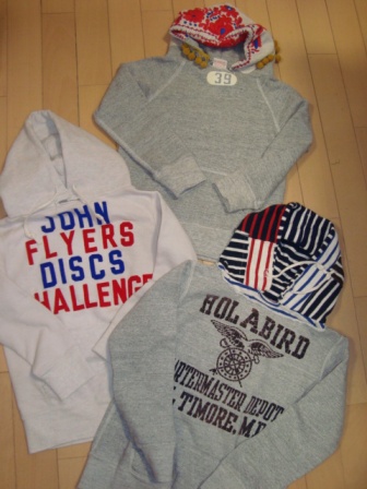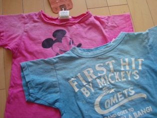 昨夜のFITH社ネットセール祭りみなさんお目当ての品は無事GET出来ましたか 私は…というと、プレセールでほぼお目当ては購入してしまい先日、近所のセレクトさんのセール初日にもリアルDD友・兼・ママ友と共に参戦し購入予定で無かったものを案の定お持ち帰り…(笑) なので、ネットセールでは本当に本当に欲しかったモノだけに狙いを絞ってました こんな日に限ってムスメの寝かしつけに手こずり、去年のSSセールと同じく「一緒に寝たふり作戦」を慣行する羽目に(泣) 去年は確かアラームで起きれず息子の踵落としを食らって事無きを得た記憶があるんだけど、今年はまさかのアラーム「11:45分」セット(゜Д゜;) ハイ、コレお昼の時間デスヨネ… 「23:45分」セットが正解です(゜ё゜) ボケボケしまくって危うく寝過ごすとこでしたが、今回はムスメの「お腹空いたぁ~~」という寝言に起こしてもらい、ギリセーフで間に合いましたやべーやべー …で、今回狙ってたの無事2点とも確定メール来ました 一つ目はコレ DD602 ハードリメイク5Pロングパンツ息子用に130のネイビーを~! やった~やった~♪ 激戦の品&サイズなので、ドキドキだったけど(^^;) 二つ目はコレ DD423 EAGLE TEE 赤 130 これも息子用(*^^*)褪せた赤に白文字… カッコ良すぎる!ミッキーのボーリングTEEの赤をお友達が買っててめっちゃ可愛かったので、我慢しきれずコチラを購入~♪ ネットは今回これだけです あ、でも、半額辺りまで残ったらムスメのデニスカが欲しいかも♪ 自分用に持っててヘビロテ中なので♪軽くて柔らかくて、ゴツイの嫌がるちびっ子には履きやすいかと あと先日のご近所セレクトさんのセールで購入したのもまとめてUPしちゃいます お持ち帰りはコチラ~ 旦那用 DD435 FLORIDA TEE ブラック MM息子用 DD422 OVER TEE レッド 120兄妹用 2011SS BEACHミッキー ホワイト 120 いや~、全く予定に無かったものしか買ってないという…(笑)ミッキーはなんとなく置いて来れずに、完全ついで買い。でもやっぱりかわゆす(≧∇≦)♪ ほんとはハードリメイクデニムがあればココで買っちゃおう♪と目論んでたんだけど残念ながら別店舗に入荷&セール除外だったので…実物見て可愛かったのをお持ち帰り。。 息子のOVER TEEは濃いオレンジのような赤にフロッキーの黒ロゴ♪ムスメに120は着丈が長いんだけど、もう着せます( ̄∇ ̄;) 長らく息子が愛用した120サイズのボロボロデニムもついに股下がつんつるてん(方言ですか?汗)この度、ムスメ用となりました 後ろも黒フロッキーでパキっとしてます 旦那のTEEも、息子用はプロパーで買ってたのでおソロ キッズサイズはまだまだセールで狙えます♪ 楽内はMMサイズ完売ですが、ママサイズとおソロも出来ま~す☆ あとはネットセールの戦利品が届くのが楽しみです(^^)♪♪ロングデニムなので、本格的に着せるのは秋以降だろな~…でも、念願のムスメとのボロボロおソロも間近楽しみ過ぎるーーーー(≧ε≦*)
