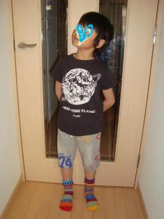 本日2回目 予約していたGC420 MUSIC PLANET Tee早速試着してもらいました 息子 身長120cm 体重21kg(以前はもっと痩せてたけど、最近よく食べるようになって、やや痩せの標準くらいになってきた♪) 130サイズ ブラック です カタログではもっとマットな黒だと思ってたんだけどスミクロのような黒色でしたサイズは120でもっとピッタリ着た方が好みなんだけどそれは来年楽しむ事にします!娘用のパープルは他のショップさんで予約なので(黒130は予約完売で同じショップさんでは無理デシタ...)他の予約品が全部入荷するまで取り置き中~ コレ、パパサイズが欲しいわぁ~ ボトムは先日ポチったゴッサムのスエパン柔らかくて履きやすいみたいですよ! お次はG2のリボンいっぱいSOX よく考えたら靴下1足にこの値段・・・でも買わずにいられないくらい可愛いんだもんよぉ~~ 早速履いてみた まさしく、リボンいっぱい靴下がめっちゃんこ可愛いです~
