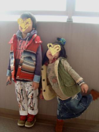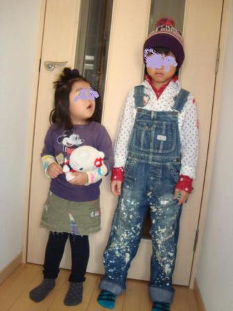 こんばんは~週末はこちら地方でも積雪で、子供達は大興奮今日もまだ日陰には凍ってツルツルの雪が残ってます我が家の冷凍庫にも、息子の持ち帰った雪がまだ入ってマス。。。 さてさて、連日の入荷ラッシュでアレもコレも・・・と目移りしちゃいますが今さら感タップリな着画が溜まってるので時間のある時にUPしときます良かったらお付き合いくださいませ~ まずは娘に予約していたGTH405 娘 98cm/16.5kg また急激に伸びました!ピンク 120 購入で、ちょうど股下辺りのチュニック丈です予約の時点ではまだ身長97cmあるかないか・・・だったんですが、この伸び率だと夏にはピッタリかも~来年も着せようと大き目にしたけど、もしや無理 FITHのハート刺繍デニムと相性バッチリですピンクの色合いも、サーモンピンクを淡くした感じで優しい雰囲気になります お次は気になりつつもノー予約だったFITH428 EMPIRE T-SHIRT春先の重ね着に、Tee以外の半端丈のトップスが欲しいな~と思っててちょうど入荷したてに出会ったのでポチってました こちらは袖丈が長くなり過ぎると半端丈にした意味がなくなるので欲張らずに(笑) 110サイズ チャコール購入 壁にもたれてるせいか、首が・・・首が肉に埋もれてる スカートとも相性良し 下に着てるのは2011AWのボーダーTeeのクレイジー Tシャツよりはシッカリした生地で、ほんと重ね着にいい厚さです袖も控えめなドルマンでラインも可愛くて買って良かったお品です ちなみに娘が履いてるボトムは、2011SSのGTHカーゴPN♪息子用にカーキをヘビロテ愛用中で夏にTeeと合わせるとすんごい可愛いので娘にもイロチでBell-Milkさんで半額でポチったヨ ママサイズ160が在庫ありでかなり誘惑 更新サボってる間に結構お揃いボトムが増えちゃってまずはで着用中のリップストップカーゴPN柔らかくて褪せててペンキ飛ばしブリーチで7分丈・・・ゆったりラインじゃないのも、ちびっ子には生意気でイイ あと、これもキャリーの新品をオクで格安で譲ってもらったのでお揃いに 息子用の2011AWのDDペンキ汚しペインターPNとお揃いにしたくて娘用にペンキOVの110を探してて、偶然発見どの色でもよかったんだけどこのくすんだベージュが娘にはよく似合って良かったですズボンってだけで嫌そうな顔してたけど「兄ちゃんといっしょやで~」って釣ると、見事に釣れました これまた夏が楽しみnoarunaちゃ~ん!またおソロだね~w あと、重ね着にシンプルな黒ボーダーって娘は持ってないな~って事で プチプラのコレもポチってます メール便送料無料で 1250円 笑着心地良さそうだったら、息子用も欲しい♪ 来月は卒園式があるけどこの寒さが続くとキツイですね><厚手のコートで防寒して、下は厚手のタイツで・・・は勘弁して欲しいです