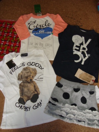 寒いけど晴れてイイお天気です 昨日の夜、息子の歯の仕上げ磨きを旦那がやった後「歯がイタイ・・・」と、息子がポツリ・・・ お父さん強く磨き過ぎたからかな~?と言いながら痛いという辺りをチェックしても、素人にはよく分からず歯も黒くなったりしてないし、取り敢えず様子見で就寝 今朝はもう何も言ってなかったので忘れてたんだけど自転車乗りに行く~って出掛けようとしたら、また神妙な顔・・・ やっぱり心配だったので急遽、私のかかりつけ歯科医に電話したらすぐ見てくれる ありがたや~~と、旦那に連れてってもらったらやっぱり虫歯じゃなく、強く磨き過ぎと注意されたようです 取り敢えず一安心したけど仕上げ磨きもあなどれませんちょっとヒヤッとした出来ごとでした 前置きが長くなりましたが 先日、お友達のberry☆berryさんに教えてもらった福袋発送連絡がなかなか無いな~と心配してたら今日、予告なく突然届きましたまぁ無事届いて良かったんですけど・・・ ポチったのはブランドMIXの女の子1102万円超入るらしい、5000円のタイプです 説明ではチャビーギャング・ヒスミニ・アースマジック・RONIなどのギャル系とDD・ゴーハリなんかのFITH系が混ざるそう 5000円なので、試しにお初ショップさんで購入です さてさて、届きました内容は・・・ グルカラ ラグラン7分袖ロンTEE ピンク 4095円GTH ロンTEE 黒 5670円チャビーギャング クマさんTシャツOP 7665円チャビーギャング 裾フリル水玉スカート 6195円 以上4点 総額23000円超でした ギャル全開だったら困りましたが、まぁアリな内容かな?後ろはこんな感じ チャビーのクマさんOPだけ、娘に似合う気がしませんが・・・交換も出来なくなりましたもんね 明日くらい楽天プロフィールに新しい機能が追加するとかしないとか もしクマさんOP気になる方いらっしゃいましたら新機能が使えそうならお問い合わせくださいませ