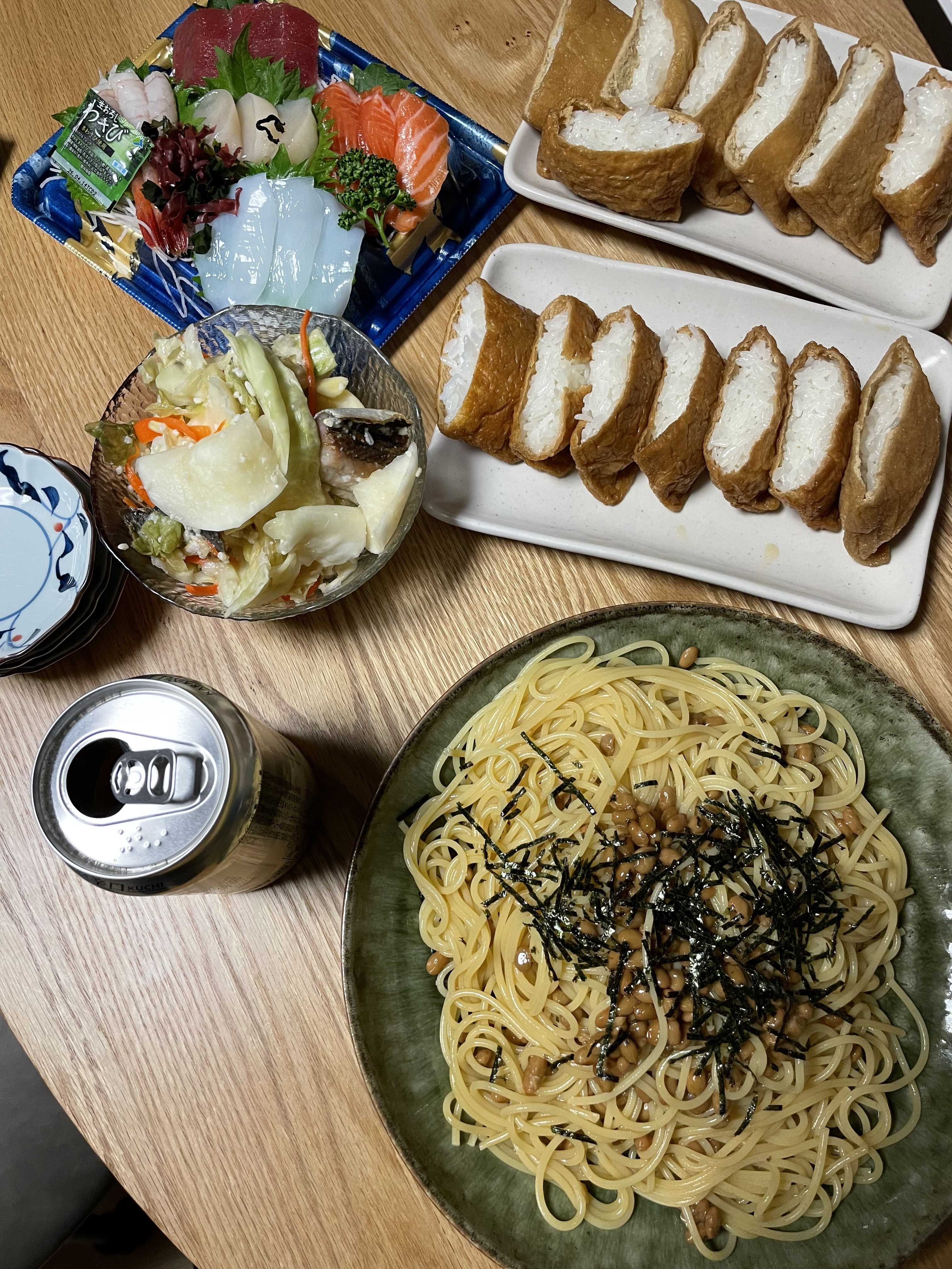 いなり寿司晩酌~!いなり寿司で飲むのか父が一生懸命作ったいなり寿司ありがとう!でも…