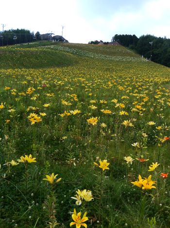 土曜日は「湯っ歩の里」の後、「塩原ハンターマウンテン」スキー場に行ってきた。何をしに?スキー?まさかね。実は東日本最大のゆり園と銘打って「ゆりパーク」が開園しているのだ。上の写真がそのゆり園の様子。ここのスキー場に来たことのある人だったら分かると思うが、第1クワッドリフト脇のブロードウェイコースに400万本のゆりが手植え?されている。正直圧倒されました。で、Canon AE-1で写真を撮っていて、フィルム1本撮り終わって巻き戻そうとして戻らない。ついにAE-1も昇天してしまった。ついでにせっかく撮ったフィルムも台無しに。素人の妻にはフィルムが勿体無いだの、何でEOSで撮らないのだのと散々言われ、ただでさえカメラが壊れてしまって意気消沈していたところを、更に鞭打つ所業。したがって上の写真は携帯で撮った画像である。8月下旬までの開園とあるが、ここのところの暑さでゆりもだんだんとその輝きを失いつつあるので、お早目のお越しを。それにしても嗚呼AE-1よ。 追伸、上記のハンターマウンテンのリンクにはライブカメラのページもあるので、現地に行けない方も現在の様子が見られるので、先ずはこちらをご覧頂きたい。