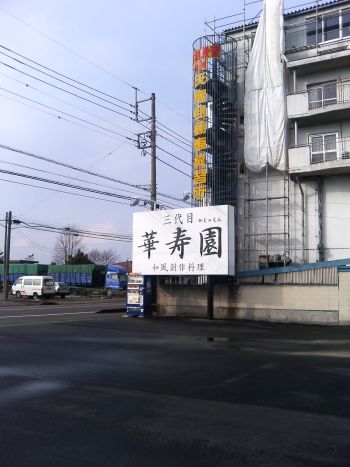 土日続けて休日出勤したからではなく、何故か冬休みを1日取れるのだそうで、月曜日はお休みした。例によって妻と昼食を食べに行ったのだが、新聞の折込チラシに載っていたお店に行こうと妻が提案したので、叶えてやることにした。そのお店は「華寿園」といい、国道4号線の氏家自動車教習所の隣にある。以前は、余り見栄えのしないドライブインだったのだが、最近リニューアルして和風創作料理の店になったのだ。 さすがに、出来たてのお店なので店内も綺麗で、給仕をしていた女将さんも感じがいい。早速、妻は「さくら御膳」を自分は「牛すき焼鍋膳」を注文した。運ばれてきた料理を見てなかなかこの店のサービス精神がうかがえる。自分のすき焼は、牛肉に隠れて写真では見えないのだが、豆腐が一丁入っているのではないかと思うほどだった。このご飯の盛も凄い!妻の「さくら御膳」も品数豊富なだけでなく、デザートも4品も付いていて、さらには風流な椀でコーヒーが運ばれてきた。ちなみに「さくら御膳」は1280円、牛すき焼鍋膳は1100円で、まったく採算無視の価格設定である。勿論料理の味もよろしい。ファミリーレストランで食事するよりよっぽどお得で美味しい。何よりデザート4品も食べた妻がその日は上機嫌だったのは言うまでもない。■さくら御膳■さくら御膳につくデザートとサービス品のざくろアイス■牛すき焼鍋膳■風流な椀に入ったコーヒー■華寿園の場所