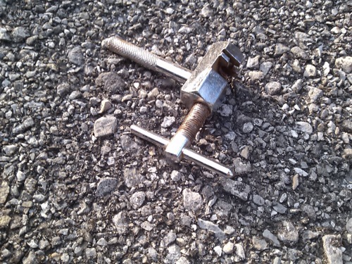 今朝、ミニベロでいつもの如くポタリングした後、そういえばと思い昔使っていた自転車用の道具が残ってないかと思って探してみたら、チェーン切りが見つかりました。ニップル回しやリム振れ取り台も確かあったはずなのですが、どこへ行ったやら。多分探せば見つかるはず。