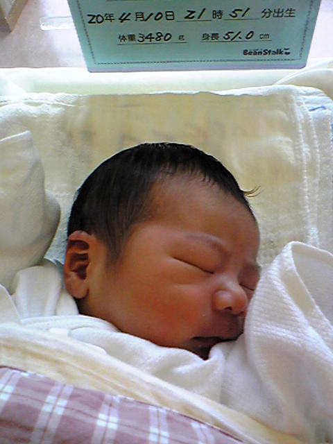 予定日の4月2日からマルっと1週間過ぎて、9日の朝から入院して、陣痛促進の薬を1時間ごとに飲み続け・・・・やっと。産まれました!ちょっと大きめの男の子です
