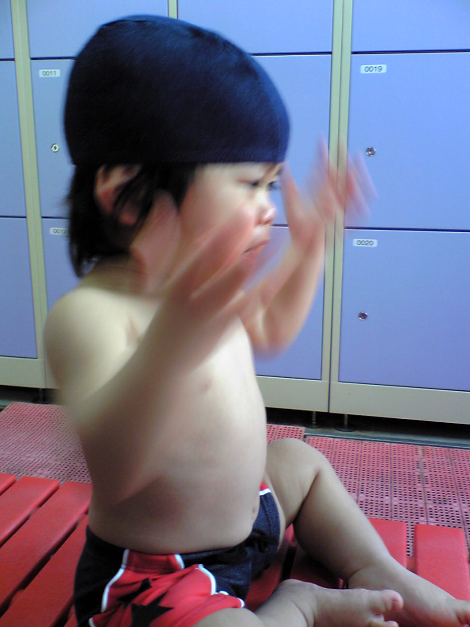 朝から調子よく子どもたちはたっぷりウンチが出たので、プールに行くことにしました。 ↓↓↓帽子がイヤでジタバタ…幼児用のプールはぬくぬくでしたこの時期なので幼児プールは貸し切り浮き輪を借りて、 娘は浮かんでみたり歩いてみたり地味~に楽しんでました。 息子は浮き輪につかまってぷかーっと浮いたまま…。なんだかうっとり顔で浮かんでました。 ぷかぷか1時間ほど遊んできました。