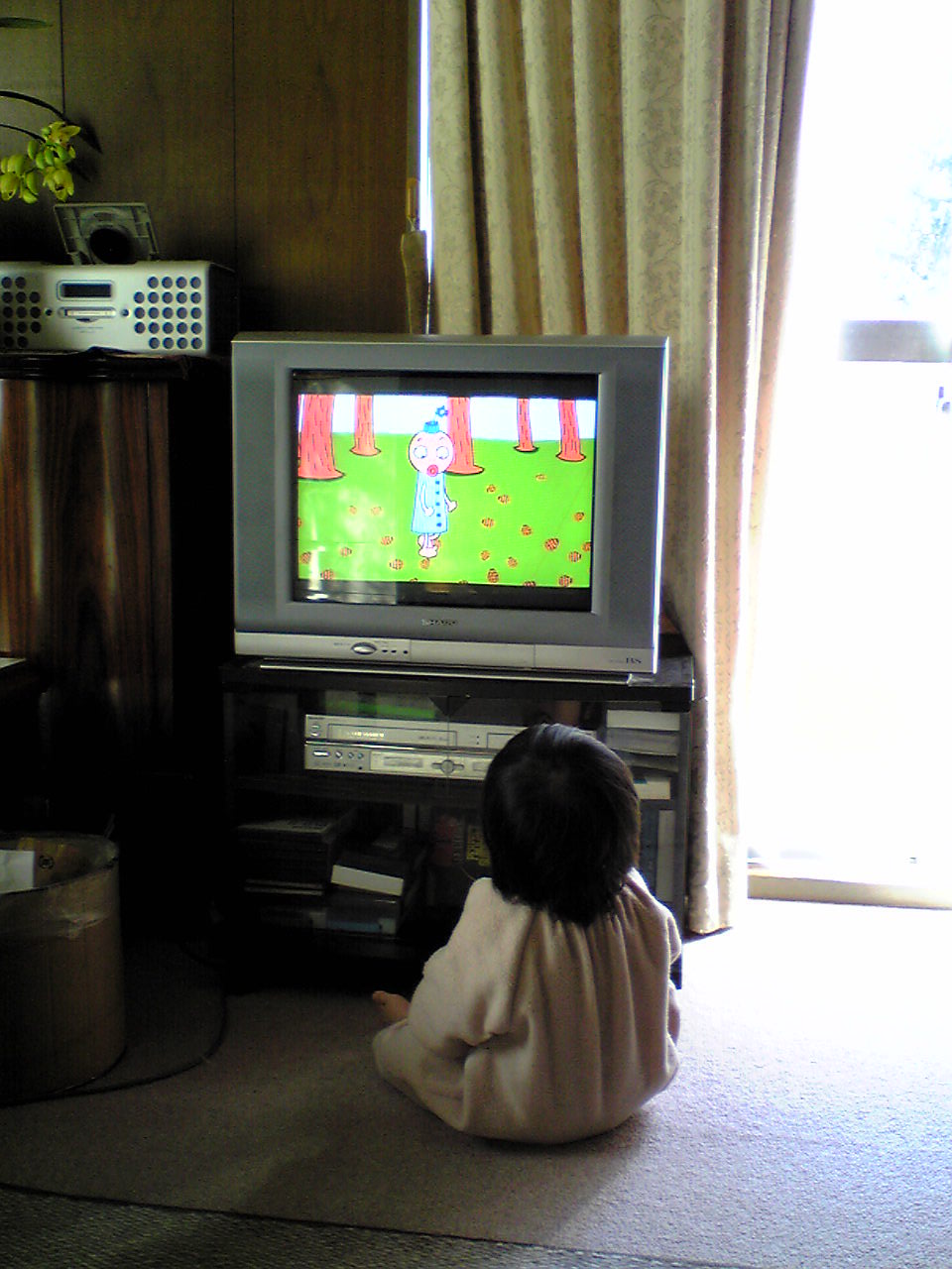 毎朝この調子。 テレビ近っ!! 後ろにずらしてもすぐこの位置に移動してる。