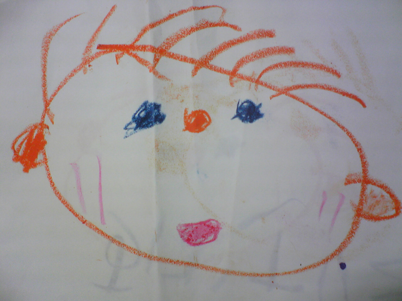 4歳の娘が描いてくれました 私だそうです。目青いし。 描いてくれようというのがとても嬉しいです。