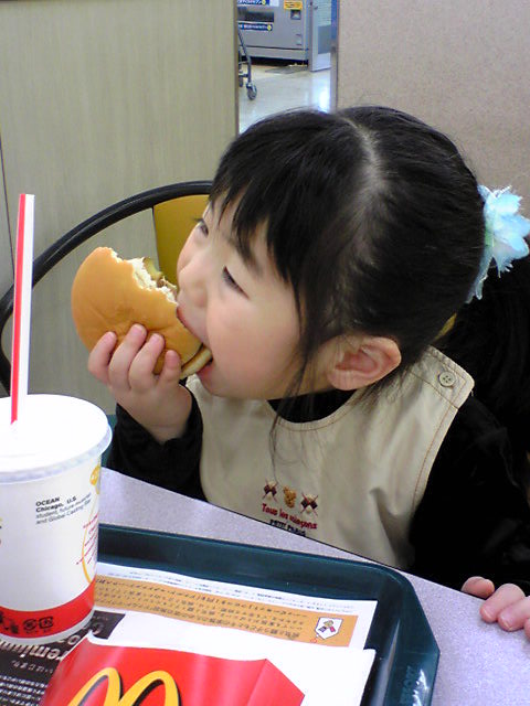 スーパー内の本屋さんで絵本を選んでいたところ、突然娘が「ハンバーグ!」「ハンバーグが食べたいよ~~~」と壁のほうを指さして泣きだしました。本屋さんの壁の向こうにハンバーガーショップがあるのが見えたのか覚えていたのか…匂ったのか?。あんまりはっきり食べたいと言うので「そっかそっか」とおやつタイムになりました。こんなんしてたら家計が持たんわね…(後で、ばあちゃんが出してくれたけど)。