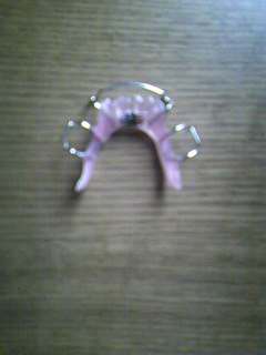 息子の顔はどちらかというと妻に似ています。妻は丸顔でアゴが小さく、そのため、小さい頃に歯を並べるために、矯正で歯を一本抜いてもらっています。息子の歯もアゴが小さいため、永久歯がかなり並び状態が悪くはえ始めてきていました。そして歯医者から矯正を勧められ、今年の春から息子に歯の矯正をさせています。昔のように抜くのはよくないということから、最近はアゴを大きくしながら、歯を綺麗に並べていくための装置を使います。それがこれです。歯茎のような部分を広げていくことによって、アゴもだんだんと大きくさせていく仕組みです。この矯正はそれほど値段が高くなく、普通は子供でも40万とかしますが、片方のアゴの装置が6万3千円。両方のアゴで12万6千円です。他に通院費が多少かかります。何十万とかかる場合とくらべると、それほど大きな金額ではないですけれど、やっぱり矯正は保険がきかないので、高いです。その装置は今のところ下アゴのほうを家にいるときにだけつけています。もう少ししたら、上アゴもつけていくのですが、昨日、息子がつけようとしたら、、、息子『かけちゃった!』と叫びました。見てみると、、、。こんなふうにまっぷたつ。↓↓↓私『6万円がおじゃんだ!』息子『ごめんね。』私『お前が悪いんじゃないよ。普通につけようとしたんだろう?』息子『うん、でも、どうしよう。』私『・・・・』心の中で、もう6万3千円を出して新しく作ってもらうか、それとも、もうやめちゃおうかと、、、、、葛藤。私『歯医者さんに相談するしかないよなあ。』息子『このままじゃあ、今日、見る夢はいろんな物が次から次へ壊れていく夢になっちゃうよう。』私『気にしなくていいよ。今日は夜だから明日、電話して聞いてみるから。』息子『今日はきっと眠れないよお。』 と言っていましたが、息子はすぐに眠りました。翌日となり、これから歯科医院に電話するところです。結果はあとからコメント欄でお伝えしますね。次回の日記は明日です。(別の内容です。)
