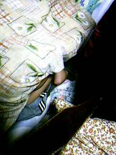息子も母親がうつ病になって本当に大変だと思っています。そのため、息子に対して、最大限の愛情と注意をそそいでおりますが、息子自身もストレスをためないように自分で、いろいろしています。息子が落ち込んだり、いじけたりして逃げ込む場所はいつも決まっています。それは、、、、 ‘‘‘‘押入れです。‘‘‘‘(笑)皆さんも経験あるかたが多いのではないかと思いますが、実は私も小さい頃、押入れにはずいぶんお世話になりました!!!!息子は、気落ちしたときだけでなく、やることがなく暇をもてあましているときも、押入れにお世話になっています。昨晩もそうでした!好きなビデオを沢山見て、ママから『もう、これ以上は見すぎですよ!』と終了指示が出たため、すぐに押入れに向かいました。いつもすることは決まって「布団落とし」です。押入れに入っている布団をほとんど全部出してしまいます。布団を出し、ごろんと横になる息子パパは優しいまなざしで見ています。全部出し終えると終了ですが、今回は息子は、うずもれてしまいました!さすがに疲れたらしく、終わったら、すやすや眠りました。くうちゃんもしっかり持っています!!!するとUFOが迎えにきました。いえ、豆電球状態にしました。ぐっすり、お休み!!!次回は明日。