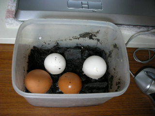 昨日の日記の続きです。それは一ヶ月くらい前のある日のこと。。。。。秋田の実家から大きなキャベツが送られてきました。キャベツを2枚ほどむいて捨て、3枚目をむこうと思ったら、なにか生き物らしきものがいました。それはわりと小さめなミミズでした。サイズは2~3センチほどで、キャベツの葉っぱと葉っぱの間にもぐり込んでいたのです。私:『愛樹~~ちょっときてごらん。いいもの見せてあげるよ~~。』息子の愛樹:『どれどれ、なになに?』私:『これ、ミミズだよ!』愛樹:『本当だ!ちょっと小さめだね。』私:『キャベツの中にいたんだよ。』息子:『へえ~。』私:『今、ペットいないから、飼いたいと思うけどどう?』息子:『うん、それはいい考えだね。』私:『ママに言ったら、いやがるだろうな~~。』息子:『かわいいけどね~。ママはこういうの嫌いだからね。』私:『こっそり飼う訳にはいかないから、一応、ママに話すね。』妻に話す。やっぱり飼うのはいやそう。。。それでも、土の中でわからないことから、少し押し切って飼うことにしました。息子:『卵のカラはなんなの?』私:『土に栄養が混ざればと思ってしたんだけれど。。。』息子:『パパ、ミミズは土に混ざっている枯葉とかを土ごと食べて栄養にしているんだよ。枯葉を混ぜてあげないとだめだよ。』私:『そっか、今度、集めてこようかね^^でも、卵のカラはせっかくしたので、このままにして、ときどきカラを新しいのに変えるね。』****ということで、現在の我が家の唯一ペのペットはミミズなのでした。息子はミミズが成長するのを楽しみにしています。ちなみに、その前のペットは「カブトエビ」、そのまた前はブログで紹介した「カタツムリ」です。本当は手乗りインコでも飼いたいのですけれど、ちょっと気持ちの余裕がないかな? カタツムリのときは「ツムくん」「カタリちゃん」と二匹にネーミングしましたけど、ミミズさんにはまだです。 ではでは^^