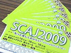 世界のコーヒーが一堂に会する2009年度のSCAJ展示会が、来週の10/14(水)~16(金)まで東京ビッグサイトで開催されます。コーヒー豆はもちろんのこと、関連機器から各種食品まで一同に紹介される国内最大のスペシャルティコーヒー展示会です。昨年開催の模様はこちらからどうぞご覧下さい。豪華賞品がプレゼントされるコーヒーフェア2009締切り迫る。ご応募は本日(水)24時までですのでまだの方はこちらからお問い合せ及びご要望は こちら又はmailboxからどうぞ。 バックナンバー170:珈琲場面オンとオフ(↓スクロールしてネ) 人気blogランキング参加中応援いつも感謝です^^♪