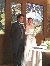 親しく長いお付合い頂いてる、サンクラウン果精(株)社長のご子息が10月24日(土)に結婚されました。 ”メゾン ポール・ボキューズ”の美味しい料理と、和やかで楽しい披露宴で皆に祝福されて幸せなお二人。初めはちょっと緊張気味^^。 一番上座で新郎新婦のすぐ前の席でしたので、二人の幸せの様子が手に取れるようでした。最初の共同作業ケーキ入刀です。ライブな写メがボケ気味なのはお酒が入って、感動と感激をしている印しとお許し下さい。 そして純白のドレスからお色直し、新婦のご友人が作られたという水色ドレスで入場です・・。 お二人には、事前にブログで紹介させて下さいとお願いして快くお受け頂きました^^。それにしても綺麗で素敵な花嫁さんですね! 宴も最高潮に達したところで新郎の父からお礼の言葉、涙と感動で最高の披露宴でした。ご両家の益々の幸せと繁栄をお祈りします。 二次会も大盛り上がり、若い人たちに交じって最後まで楽しませて頂きました。新しい人生の門出に一緒に立ち会えて、toshinnyも幸せ気分をいっぱい頂戴しました。お二人どうぞ、末永くお幸せに バックナンバー140:素敵なお付合い仲間(↓スクロールしてネ) 人気blogランキング参加中応援いつも感謝です^^♪