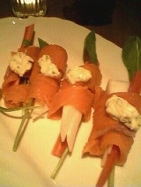 昨日は、渋谷で友人と会食をしました。本日の一品を紹介します、それは「京野菜とキングサーモンのルーレ」。