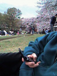 そして最近は、芝生に寝転びながら携帯やモバイルも花見する、ネット融合の新時代となりました。