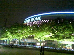 帰りは別の用事があったのでJR水道橋駅まで歩く。雨が降り出し、夜のイルミネーションが濡れた路面に反射してまばゆい。