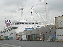 島へ送る商品の搬入に行ってきました。この日、芝浦埠頭には普段なかなか見ることの出来ない「 おがさわら丸 」が荷物の搬出入で一日停泊していました。
