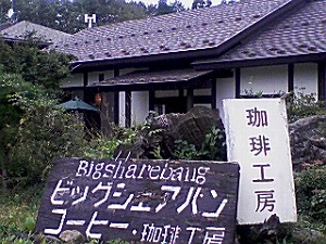 那須高原の御用邸に向かうロイヤルロードの左にあるお店は、最近喫茶コーナー「カフェぼっこ」も創めた自家焙煎珈琲の工房です。店内は古民家を改装した重厚なつくり、柱の梁もそのままに天井が高くて癒し空間がいっぱいです。