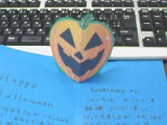 ご覧のように中を開けると、可愛いかぼちゃランタンが飛び出します。一緒に頂戴したハロウィン・パスタ、早速妻が料理しましたよ。