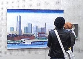 作品は横浜の風景画F120号。足を止めて見入ってくれてる人もいて本人も大変喜んでいました。