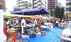 一番上の写真はスタート2時間前のもよう、駐車場に連ねる夜店の裏方さんたちは準備に大わらわ。