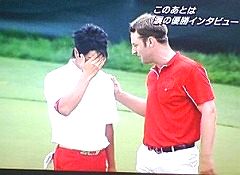 最後の最後にバーディーを決めて決着がつきました。共に戦ったB・Jに祝福されて感激の涙です。 ブログ に本人の心境コメントあり。