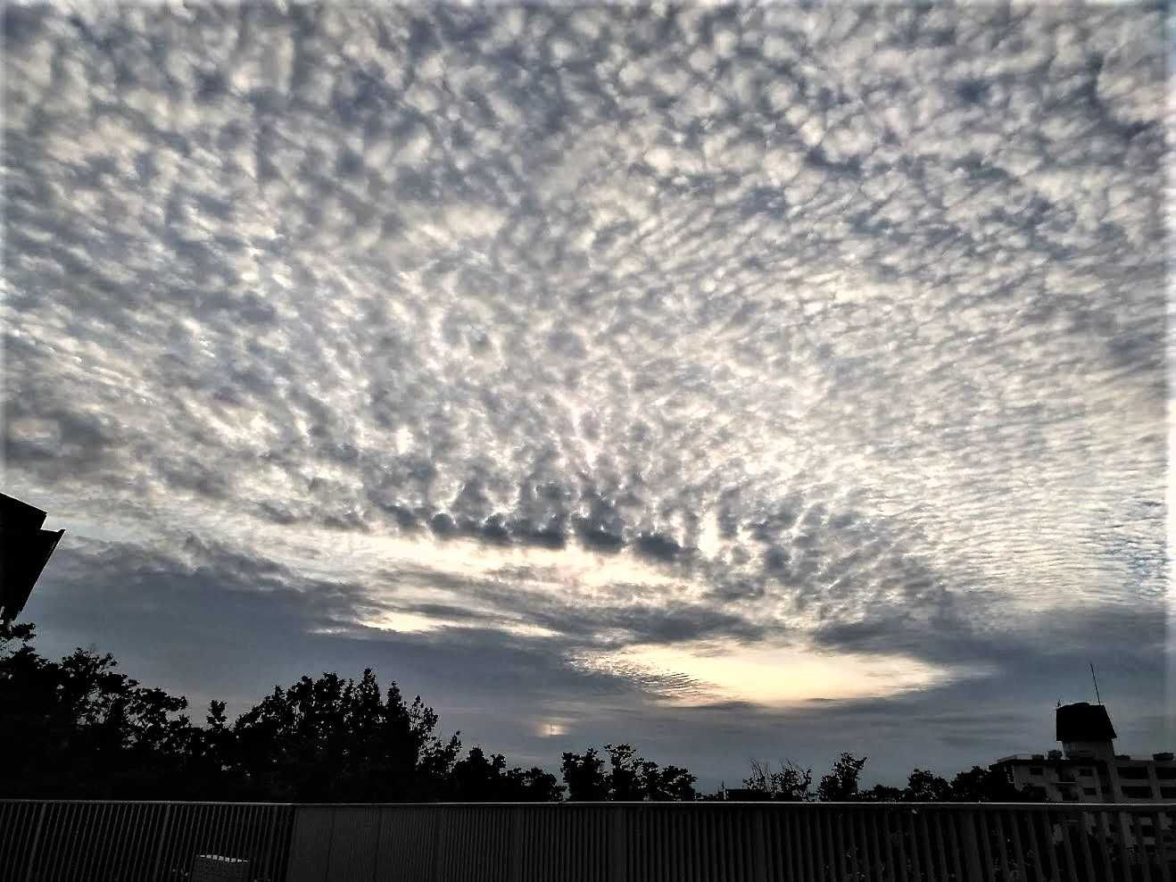 いわし雲、うろこ雲、さば雲が三重奏を奏でたような、自然のアートでした。