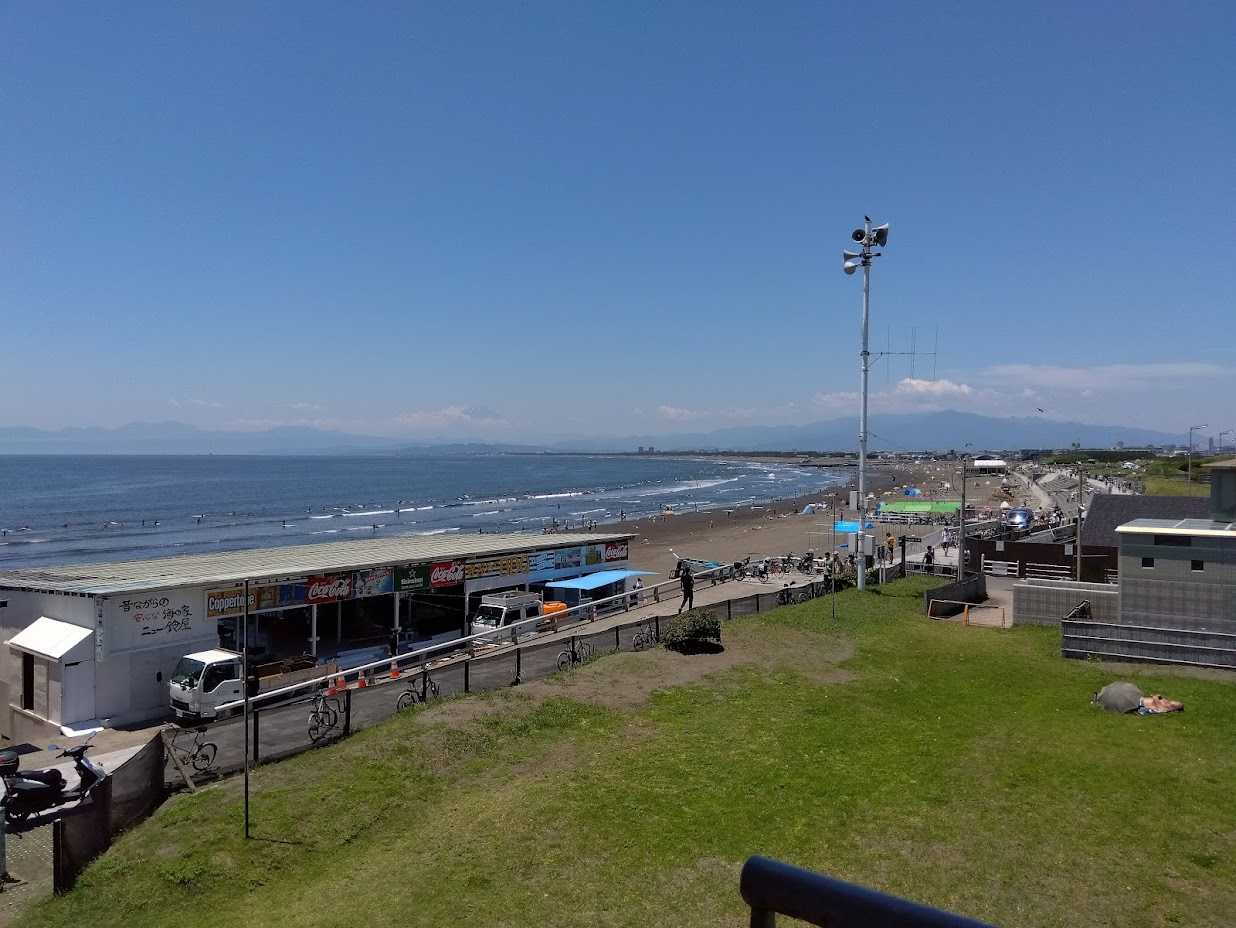 江の島の西浜のビーチも、この暑さに誘われて凄い人出でした。