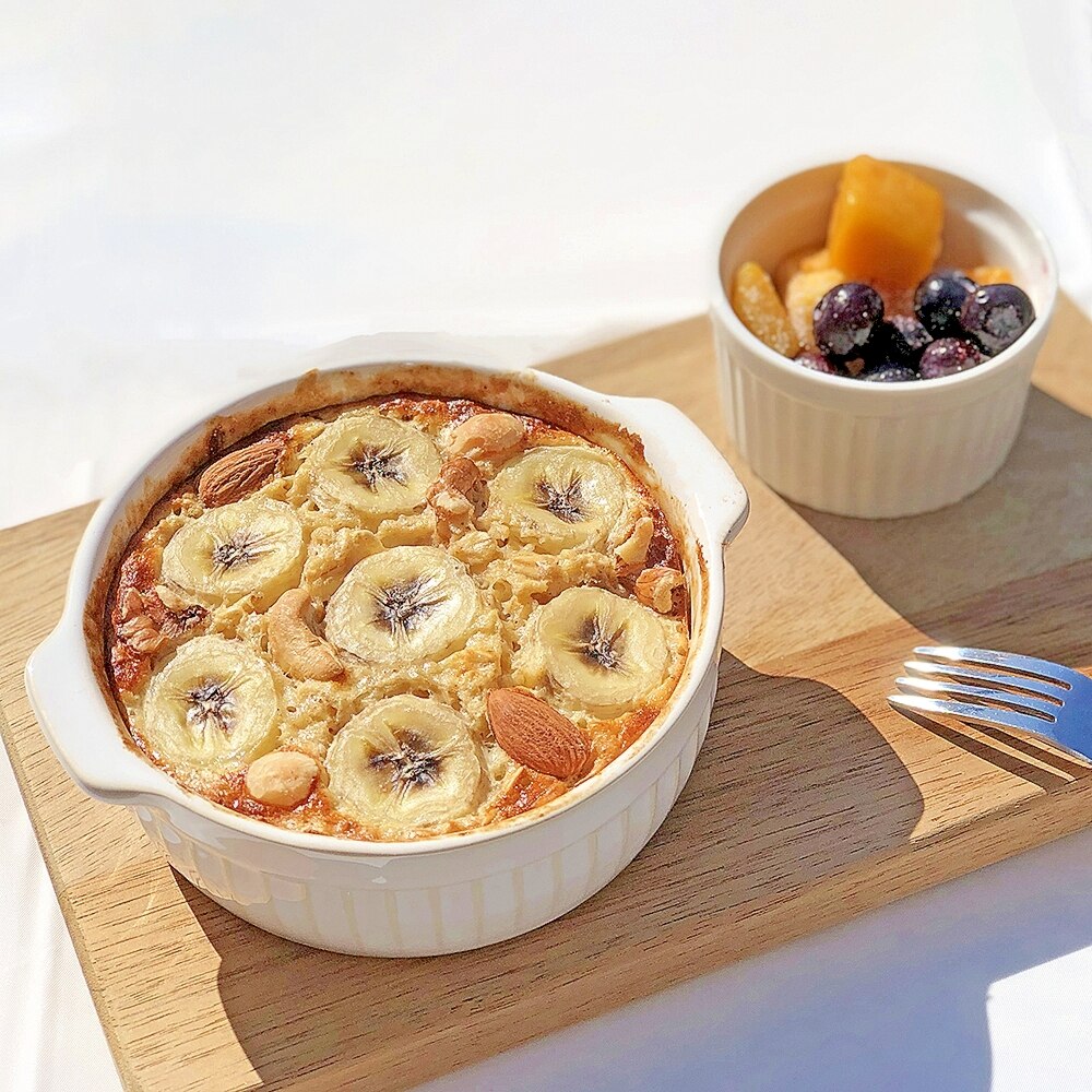 おひとりさまサイズ腹持ち最強!ベイクドオートミール料理名:おひとりさまサイズ腹持ち最強!ベイクドオートミール作者: まりのダイエット食堂■材料(1人分)オートミール / 30gラカント / 10g塩 / 少々シナモンパウダー / 適量ヨーグルト(無糖) / 30g溶き卵 / 1/2個分無調整豆乳 / 20gバニラエッセンス / 3~4滴ベーキングパウダー / 2gバナナ / 1本ミックスナッツ / お好みの量■レシピを考えた人のコメント朝ごはんにぴったりで満足感たっぷりなベイクドオートミール!オートミールのもちもち感とバナナの甘酸っぱさが食欲をそそります。詳細を楽天レシピで見る→