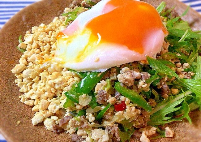 最高に美味しいソイライス&ガパオライス(糖質制限)料理名:最高に美味しいソイライス&ガパオライス(糖質制限)作者: ねこやましゅん■材料(2人分)ネギ / 1本鶏もも肉 / 100gたまご / 1個木綿豆腐 / 2丁砂肝 / 50gニンニク / 2片ピーマン / 2個水菜 / 半袋鷹の爪 / 2本料理酒 / 大さじ1醤油 / 小さじ4砂糖 / 小さじ1ナンプラー / 小さじ2オリーブオイル / 大さじ1オイスターソース / 小さじ1■レシピを考えた人のコメントエスニック料理が大好きだ。東南アジアの屋台で、どんとテーブルに置かれる料理。糖質制限中にも大満足のソイライス&ガパオライスをご紹介したい。詳細を楽天レシピで見る→