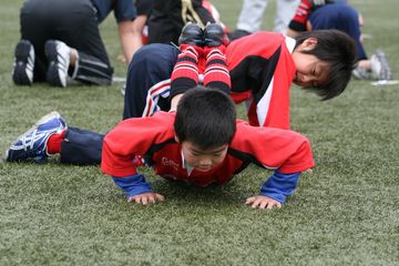 今日は2010年度の初練習を行いました。今年度から練習日が日曜となり、ジュニア(中学生)の部も一緒にできる様になりました。今日は、年度初めという事で、体力測定を行いました。上体起こし、腕立て伏せ、シャトルラン、50m走、5分間走、立ち幅跳びを測定しました。みんな全力を出し切れたかな?去年より記録は伸びたかな?(上体起こし)(50m走、ミニの部)(50m走、ジュニアの部)(5分間走)
