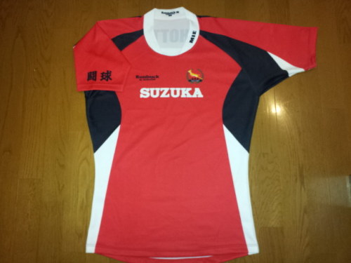 皆さんこんにちは本日は練習風景のブログUp前に、鈴鹿RSのスローガンとNewジャージの紹介です。今期鈴鹿RSはスローガンを掲げる事にしました。鈴鹿RSのスローガンは『勇気』と『集中』です!!『勇気』大きな相手に果敢に挑むタックルやアタック、特にタックルは勇気の無い者には出来ません。『タックルに行けないものはラガーマンではない』とコーチは高校の恩師に教えられました。生徒の皆さんも一つずつ基本を身につけ、勇気あるラガーマン(ラガール)になって下さい。『集中』今期の開校式で私は皆さんにこう言いました。『練習は週1回しかありません!2時間半だけです。 その2時間半だけはラグビーの事だけに集中して下さい。』とそうすれば絶対に勝てるチームになると言った事をおぼえてますか?グラウンドに立ち練習が始まって終了の挨拶をするまでラグビーに集中しましょう!『勇気』と『集中』 を合言葉に今期一年鈴鹿RS頑張りましょう。あと今日から鈴鹿RSのジャージが一新されました。今までのジャージからデザインは大きく変えていませんが素材と品質にこだわり、昇華プリントをふんだんに使った最高品質です。襟にはMIE、右袖には『闘球』の文字が入っています。そして今まで鈴鹿RSになかったエンブレムをデザインし入れました。南アフリカ スプリングボクスに似ていますが、これは鈴鹿の鹿です(笑)鈴鹿山脈にいる鹿の様に、皆俊敏かつダイナミックな動きが出来るようにの想いをこめてデザインしました。背中には自分の好きな文字(名前やイニシャル、ニックネームなど)を入れ背番号は自分の好きな数字にしています。※ちなみにコーチが45なのは現役時代のポジションがロックだったからです。生徒の皆さん来週の熊野カップはこのNewジャージとスローガンで大暴れしましょう!