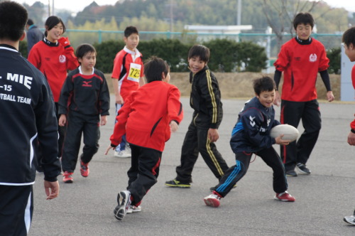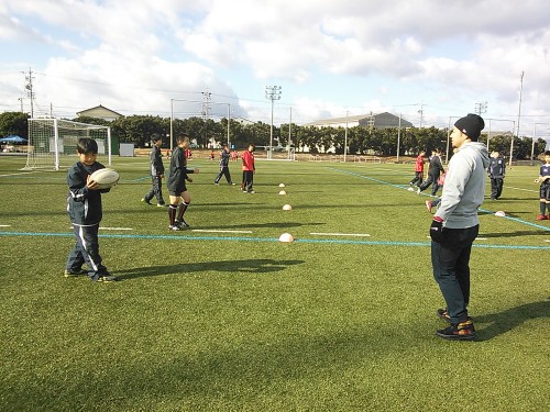 皆さんこんばんは 本日が今年の最終練習でしたが、朝から天気が不安定… 細かく冷たい雨が降ったり晴れたりの天気でしたが、 HALでは熱い練習と正月初っ端のチャレンジマッチに向けて 熱い試合が行われていました。 それでは本日の内容行ってみましょ~♪《Dグレード練習風景》 Dグレードには本日2名の体験入校生徒が来てくれました。 あいにくの雨でしたが、『めちゃくちゃ楽しかった!』 と言ってくれたのでこっちも嬉しかったです。《C/B/Aグレード練習風景》 ミニグレード(小学生)の練習は正月のチャレンジマッチに向けて プチチャレンジマッチを行いました。 1年生~3年生を2チームに分けての試合(Bグレードルール) 4年生~6年生を2チームに分けての試合(Aグレードルール) を各グレードの基本練習後に前半だけ行いましたが、 雨を吹き飛ばす熱いゲームが繰り広げられました。 1~3年生プチチャレンジマッチ試合開始です。 白熱したナイスゲームでした! 結果は3TRY対1TRYで武藤コーチ監督チームが勝利! ただ本日のマンオブザマッチは敗れたチームから2年生のY君! 何度もみせた積極的なアタックと、最後のプレーでTRY寸前で タックルされた後も仲間のフォロー者にしっかり繋ぐ継続を意識 したダウンボールがとてもよかったです。 そのプレーでナイスフォローを見せたH君、勝利チームで攻守ともに 頑張っていたR君、K君など正月のチャレンジマッチ本番では どの生徒がマンオブザマッチを取るか今から楽しみです! 皆チャンスは平等です! 正月のチャレンジマッチでマンオブザマッチを目指して頑張れ~! 4~6年生プチチャレンジマッチもキックオフ! こちらも本当に白熱したナイスゲームでした! 結果は終了寸前のTRYで4TRY対4TRYで同点でした。 このゲームのマンオブザマッチはただ1人飛び級で参加した3年生のK君でした。 ボールへの働きかけ、闘争心、そして何より誰よりも走っています。 本当に3年生なのか?とコーチ陣が驚く程のプレーでした。 6年生のキャプテン/副キャプテン、5年生のY君・K君も良く頑張ってました。 4年生ではナイスジャッカルを見せたY君、タックルのいいS君など 本番のマンオブザマッチは誰がとってもおかしくないので皆頑張れ~! 試合前に各チームで気合い入れます! 《Jrグレード練習風景》 Jrも正月のチャレンジマッチに向け練習最後にコーチ陣と7人制試合 をする予定でしたが、天候が悪化した為中止しました。 まあ今日はJrの鬼コーチ3人衆が揃っていたので、 2時間みっちり絞られてたからあの後試合では… まあ正月までのお楽しみですね(笑) あとJrグレードに本日も2名の体験入校者は来てくれました。 2人とも中3なのであと3ヶ月ですが、 高校ではラグビー部に入りたいと言っているので 頑張って欲しいと思います。 今年 鈴鹿RSは飛躍的な成長を遂げました! これもひとえに熱心なコーチ陣、保護者の皆様のおかげです。 本当にありがとう御座います。 来年もよろしくお願い致します。 生徒の皆さん 一年間お疲れ様でした。 このすばらしい環境でラグビーが出来るのは 多くの皆さんのご協力、貴方達のお父さん・お母さんが サポートしてくれているからです。 常に『感謝の念』を忘れずに! 来年も『勇気』『集中』 頑張りましょう! ※最後の写真はナイススマイルの杉野コーチ(笑) 杉野コーチには正月チャレンジマッチの中学生vsコーチ陣でレフリーをして頂きます!