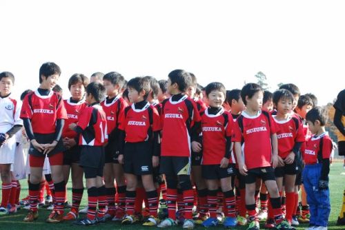 皆さんこんばんは いよいよやってきました本年度の集大成! そう三重県小学生ラグビーフットボール大会です。 先に言っておきますが今回のブログUpはめっさ長いです(笑) 《鈴鹿RSミニグレード生徒が集結!》 《開会式 少し緊張気味です!》 まずはCグレードの内容からUpします。 Cグレードは春の熊野カップ全勝優勝を果たし、 春のチャンピオンチームとしてのプライドを持ち試合に挑みました。 苦戦した試合もありましたが、見事3勝1分けで優勝! 春秋連覇を成し遂げてくれました! 《さあ試合に向けてアップ開始!》 《試合前の気合入れ!》 《みんな本当によく頑張りました!》 《Cグレード コーチ陣と一緒に記念撮影!》 Cグレードの皆 本当に優勝おめでとう! これからもっと頑張って仲間とともに 『鈴鹿魂』に磨きをかけましょう! 続いてはBグレードです。 Bグレードは春の熊野カップ、全て僅差の試合でしたが 全敗し屈辱の最下位からスタートしました。 今回の県大会までの練習は、そのリベンジを果すべく 苦しい練習も歯を食いしばり頑張って来ました。 県大会はその効果が随所に出ており、 3勝1敗で準優勝を獲得! しかも3勝中2勝は両方とも1TRY差の接戦を逆に掴み取る 粘りあるディフェンスと積極的なアタック、春とは逆に接戦を ものにし、優勝には一歩徒届きませんでしたが 見事にリベンジを果たしてくれました。 《春のリベンジを果すぞ!》 《Bグレード試合内容》 《Bグレード コーチ陣と一緒に記念撮影!》 Bグレードの皆 全試合全てナイスゲームでした! やっぱり日頃の努力はウソをつきません。 君達の努力の証が結果として出ましたね! 接戦を制する事が出来る様になったのも、 君達の成長の証です。 来年は一歩とどかなかった優勝を捥ぎ取れる様に頑張ろう! 続いてはAグレードです。 コーチは君達を2012年5月に鈴鹿RSに入り担当して来ましたが、 就任当初は本当に苦労しました(笑) 脚に砂がついただけでそれを気にする生徒、 パスが出来ない、取れないは当たり前、 試合中/練習中 声がまったく出ない 言い出したらキリが無いくらいでした。 でも現在の鈴鹿RS Aグレードの生徒に そんな子は1人もいません! 君達はこの約1年半で劇的に成長し、今まで 手も足も出なかった高学年グレードの他チームを本気にさせ、 ものすごく気持ちの入った試合が出来る、 真のラガーになったと思います。 その結果が今日の2勝2敗第3位という結果になって 残った事、コーチ達は君達を誇りに思います。 圧巻やったのは3戦目の四日市Jr戦 前半はズルズルと突き放され、以前の君達なら 差をつけられた時点ですでに諦め、 ろくに走りもしなかったでしょう。 ところが後半気持ちのこもった試合を展開、 後半開始から見事な集中をみせ、2TRYを取って来ました。 そこからも粘り強いディフェンス!最高でした。 あの試合は今日勝った2試合よりも価値のある試合 負けたゲームですが、君達の今年度ベストゲームです。 あの試合の気持ちがあったから、 4戦目の大勝につながったとコーチは思います。 《Aグレード試合内容》 《Aグレード コーチ陣と一緒に記念撮影!》 本当に君達は今持っている力を全て出し切ってくれました。 感動をありがとう! ※危うくコーチは人前で泣いてしまうとでした(笑) 《Aグレード6年生生徒 保護者の皆さんと一緒に!》 ※全員ええ顔になりましたね! 《Cグレード表彰式》 《Bグレード表彰式》 《Aグレード表彰式》 《最後は全員で! 祝鈴鹿RS 全グレード入賞!》 皆 お疲れ様! 本当にどのグレードも最高に気持ちの入った試合ばっかりでした。 来年こそ今年届かなかった 『鈴鹿RS 全グレード制覇!!』を目標に頑張ろう! 各グレードコーチ陣の皆様 保護者の皆様 いつも合同練習で御力添え頂いた他スクールの皆様 最高のグラウンドを提供頂いているHondaHEATの皆様 本当にありがとうございました。 ただ鈴鹿RSの挑戦はまだまだこれからです… 今後とも御力添え頂けます様、よろしくお願い致します。