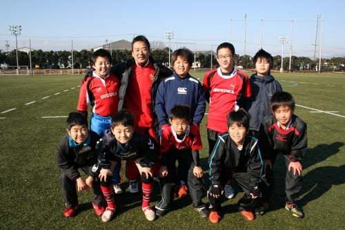 皆様 新年明けましておめでとうございます。 本年も鈴鹿RSをよろしくお願い致します。 さて今日が鈴鹿RS 2014年のスタートとなりました。 やっぱり日頃の行いがいいのか、新春快晴 素晴らしい天気の下 HALにて今年初挑戦の鈴鹿RS内『新春チャレンジマッチ』を行いました。 チャレンジマッチの概要は、 1年~3年生を2チームに分け、Bグレードルールで試合。 4年~6年生を2チームに分け、Aグレードルールで試合。 Jrグレード VS コーチ陣で7人制ルールでの試合。 の3試合となっております。 試合は全て白熱したナイスゲームでしたんで、今回のブログは Upも3部構成で行います。(最後に餅つき大会もUpします。) よって1日1試合ずつUpしていきますので、水曜日まで お付き合い下さい。(笑) それではまず1年~3年生のチャレンジマッチからスタートです。 《新年初っ端の御挨拶、あけましておめでとうございま~す!》 《まずはチーム分け!武藤監督チームメンバーです!》 《そして宮崎監督チームメンバーです!》 《いよいよ試合開始!円陣で気合いが入ります!》 《白熱の試合キックオフ!!》 カメラマンの腕がいいから、いい写真が多くて いっぱい貼ってしまいましたが、ミスも少なく継続をしっかり 意識出来ていたナイスゲームでした。 試合は 7本 対 3本でビブスを着た方、宮崎監督チームの勝利! でもゲーム内容はTRY数の差を感じない、両方ともナイスゲームでした! 試合終了後、全員で記念撮影! ちょっと逆光ですが、みんないい顔しています! このゲームのマンオブザマッチは後ほどの餅つき大会編でUpします。 第2部につづく… 本日はここまで(笑)