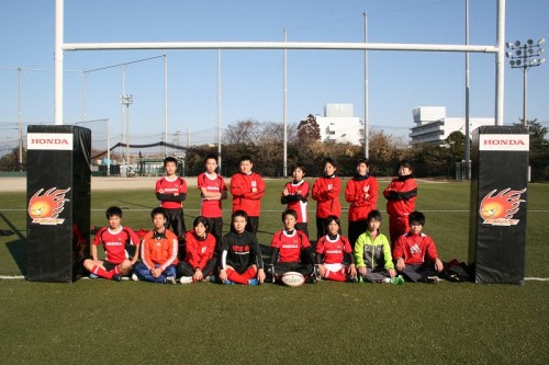 皆さんこんばんは 今日の鈴鹿RS練習は、国内ラグビーの聖地 『花園ラグビー場』にて開催された、トップチャレンジ最終戦 HondaHEAT VS 福岡サニックスブルース との試合に行ってきました。 Hondaさんの御協力のもと、貸切バスも御用意いただき 鈴鹿RS総勢40名で聖地 花園へ出発です! 出発前から生徒達は後部座席に集結し、めっさ楽しそうです。 ていうかかなり遠足気分(笑) 今回はあくまでも練習の一環として、生徒達に日本ラグビーの 聖地 花園を肌で感じてもらい、 将来この芝を踏んで欲しい!との想いから来ておりますが、 生徒達は感じてくれているのでしょうか? 花園に向かう途中でHEATからのサプライズ! 選手とのジャンケンに勝ったら4名に オリジナルボールとHEATタオルプレゼント!が開催されました。 鈴鹿RSのバスは7人制日本代表の 地元 四日市農芸高校出身、後藤選手です。 後藤選手ありがとうございました。 スクールの練習にも是非来てくださいね!(笑) 激戦が繰り広げられました。 試合前から負けられない戦いがここにありました!(笑) 幸運にもGETした生徒達、さっそく持参し応援です! 花園到着! さっそく応援グッズを準備します! 頑張れ HondaHEAT! 兄弟仲良く応援! 花園ラグビー場はHonda大応援団でいっぱい! 試合は残念ながら後半4点差まで追い上げたものの 30 対 16 で敗戦となりました。 でも最後まで決して諦めないHEAT選手に精一杯の エールを送ってきました。 聖地 花園ラグビー場はやっぱり身が引き締まります! この子達から、将来このグラウンドでプレー出来る選手が たくさん出てきて欲しい! 生徒達もコーチ陣もとても有意義な1日でした。 最後は入り口前で記念撮影! いつかここでプレー出来る事を願って! Honda関係者の皆様 HondaHEAT関係者の皆様 本日は鈴鹿RSの団体バス準備にご配慮いただき 本当にありがとう御座いました。 2/15(土)のNTTドコモとの入替戦も全力で応援します! 来シーズンは絶対トップリーグです! 我々は全員信じてます! 頑張れ HondaHEAT 負けるな HondaHEAT