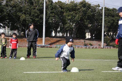 皆さん こんばんは小雨の降るあいにくの天気となった鈴鹿の空でしたが「雨なんて関係ない!!」と沢山の元気な生徒たちが練習に来てくれました。本日の鈴鹿RSは「負けられない戦い!」が垣間見えました。それでは、練習内容いってみましょう!!Dグレードは本日お休みでした。ということで≪Cグレード≫みんな「マイボール」「パス」と大きな声で練習しています。「負けられない戦い~男の意地~」相撲編腰を落としてぇ!!踏ん張ってぇ!!負けるなぁ!!≪Bグレード≫ランパス!ボールをもらう時にトップスピードでもらえるように意識しましょう!ラダートレーニングでは確実に!素早く!(私は間違えなく足がもつれます・・・)≪Aグレード≫宮本コーチの合図で体を右!左!上!前!と俊敏に動かします!!小刻みにつま先で足踏み!が大切です!!円になってパス練習!コミュニケーションが大切です!ノックオンにはご注意を!Cグレードに負けじと気合の入った声で「パス!!」≪中学生≫体づくりは大切です!この練習見てるだけで、ものすっごいしんどそうでした。ハンドリング練習は「ハンズアップ」をしっかり!タックル練習はしっかり体をあててぇぇ!コーチのプレッシャーに負けずに高い位置でキャッチします!半身でキャッチしないと着地地点でタックルされると危険ですよ!!しっかり、グレードで練習した後は・・・・鈴鹿RS名物!プチチャレンジマッチ「負けられない戦い~鈴鹿の意地~」がおこなわれました!今回も新春企画同様123年生の混合チーム・456年生の混合チームで試合をしました。どちらのゲームもガチンコで「負けられない戦い」が随所にありました。≪123年生≫「負けられない戦い~ボールへの執念~」アタック、ディフェンスともに冴えわたっていました!≪456年生≫「負けられない戦い~折れない心~」高学年らしい迫力あるゲーム展開大人顔負けの鋭いタックル&キレッキレのステップに魅了されました!倒れても、外されても諦めずに追いかける生徒たち・・・いつものプチチャレンジマッチであれば、これで終了なのですが・・・・本日はドリームマッチとして中学1年生VS小学6年+αがおこなわれました。本当に本当に『負けられない戦い』がありました。「負けられない戦い~先輩の意地~」たかが1年されど1年・・・。先輩たちの体格はやはり大きく小学生は若干ビビり気味でした。が!!いざプレーが始まると、Aグレードを率いている6年生!バッチバッチと中学生相手に鋭いタックルをみせてれくれました!!負けじと中学生も力をみせつけ、試合は一進一退の攻防!!ゲーム中、中学生が6年生キャプテンについて「アイツ強!!ナメていったらあかんわ!!」と・・・・。お兄様方!!ナメてもらったらあきまへんよぉぉ!!来年は同じチームでラグビーをする両者・・・とても良い刺激になってくれたと思います。3試合ともナイスゲームでした。下級生は上級生に通用するという自信を上級生は下級生に負けられない意地をそれぞれが何かを感じてくれていると思います。それを今後の練習に活かしラグガーマン・ラガールとして成長してくれたらと思います。来週の鈴鹿RSは10:00よりHondaアクティブランドにて通常練習をおこないます。インフルエンザ・ノロウィルスが流行ってきています。手洗いウガイを徹底し、体調管理を心がけましょう!!