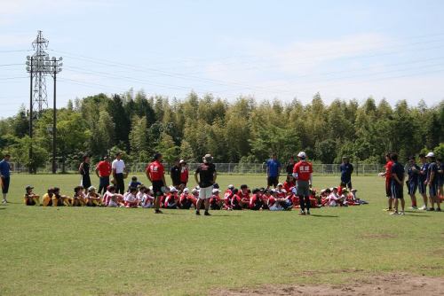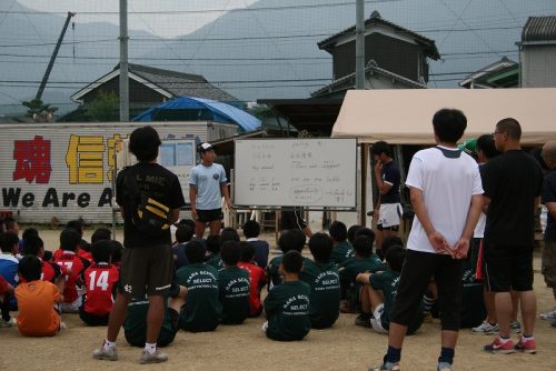 みなさんこんばんは。熱い戦いを繰り広げた熊野カップから1週間が経ちました。そして、今週末は真夏さながらの猛暑でしたね(><)急激な気温の上昇に身体がついていかず体調を崩された人もいるのでは??そんな猛暑の中、HALに集まった鈴鹿RSの仲間たち!!猛暑もなんのその!!元気に練習をしてくれました。今週はHondaHEATのタカウ選手・奥中選手・圓生選手が練習に参加してくださいました。春季オープン戦の翌日にも関わらず子供たちにラグビーを教えてくださいました。温かいHEAT選手に囲まれて本当に鈴鹿RS生は幸せ者です。HondaHEATの皆さん。本当にありがとうございます。今週はJr.2・3年生は三重県スクール選抜として愛知県瑞穂にて愛知県中学校選抜さんと練習試合に行っております。HALではJr.1年生とミニが練習をおこないました。それでは練習内容にまいりましょう!!まずは≪Dグレード!!≫気が付けば8人の大所帯・・・嬉しいことです(^^)暑さとか・・・関係ありません(笑)コーチは少し休憩したほうが良いと言っても休憩時間は約3分・・・この子たちはカップラーメンのごとくエネルギーチャージしてくれます。コーチは若干・・・ヘトヘトです(笑)どんなに疲れても、この笑顔に癒されます♪≪Cグレード≫マーカーごとにステップ!ん??Cグレードさん・・・裸足じゃないですか??(笑)タックルバックにヒット!!・・・ここも裸足(笑)コーチ対Cグレード!ミニゲーム!!!コーチも裸足・・・(笑)HALの天然芝Gだからできる練習ですね!素晴らしい環境でラグビーができる事に改めて感謝!≪Bグレード≫アジリティ系トレーニング基本のパス練習!暑さに負けずにランパス!最後はゲームでしめました!猛暑の中、暑さに負けない熱さで練習してくれました!≪Aグレード≫ミーティング中・・・今自分たちに足りないもの、目標を再確認!こちらもアジリティトレーニング!運動神経系を刺激します!フォローラン練習!タカウ選手の指導を真剣に聞く生徒たち新たな目標に向かって再スタートを切ったAグレード!!≪Jr.≫3月に鈴鹿RSを卒業したA君が顔を見せにきてくれました。少し逞しくなったA君。昨日は三重県高校総体決勝戦!!後輩たちとひと汗流して大会会場へ向かいました。また、元気な顔を見せに来てくださいね♪Jr.は基本練習をみっちりおこないました。パス練習!そして、キック練習!!猛暑の中、熱中症にもならず元気に練習をしてくれました。こまめな水分補給を促し、生徒の安全を第一に考え練習をしてくださったコーチ陣に心から感謝!練習後、恒例の個人目標発表!今は遠くにある夢、なりたい自分。思い続け、努力し続けることで遠くにある夢も手の届く位置まで近づけると信じて!最後は練習に参加してくださったHEATの選手にお礼の挨拶。熊野カップを終え、新体制となって一体感が感じられる練習でした。新たな目標に向かって「勇気」「集中」で頑張りましょう!!厳しい暑さが続きます。こまめな水分補給と徐々に体を暑さにならしていきましょう!!夏はこれからです!!