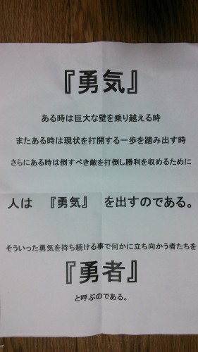 11月8日(土)は日本代表対マオリオールブラックスの試合がありましたね!?皆さん!!観ましたか??1週間前には40点差をつけられ敗退した日本代表でしたが、1週間で修正をし2点差まで詰め寄りました!!本当に感動する試合内容でしたね!!そんな熱い試合の翌日、HALにて通常練習が行われました。あいにくの天候となったこの日、体育館をお借りして全体練習をおこないました。本当に素晴らしい環境でラグビーができることに心から感謝申し上げます。練習冒頭に武藤コーチがプリントを配布しました。その内容がこちら↓↓鈴鹿RSのスローガン「勇気・集中」その「勇気」とはいったい何か??このプリントに書いてありますね!?君たちがなりたい自分・かかげた目標の達成には・・・1.必ず壁をこえなければならない。2.今の自分から一つ成長しなくてはならない。3.倒さなくてはいけないライバルに勝たなくてはならない。このとき、心の中で「こわいな」や「できなかったらどうしよう・・・」なんて声が聞こえてきますよね?でも、その声に負けないで「よし!!絶対にやってみせる!!」という気持ちが君たちを突き動かしませんか?それが「勇気」です。その気持ちを持ち続ける人を「勇者」と言います。鈴鹿RSの皆さんはいつも「勇気」を持ち続けてください!!武藤コーチが「鈴鹿RSのジャージを身にまとった君たちは「勇者」なんだよ!!」と生徒たちに話した時、子供たちの顔がどこか引き締まったように見えました。「勇者」は子供の頃に誰もが1度は憧れる存在ですよね?赤い小鹿の勇者達それが鈴鹿RSなんですね!!ということでバンビ勇者たちは元気に練習を始めました!!≪全体練習in体育館≫~手つなぎ鬼~≪Dグレード≫本日は体育館で練習しました!!歩きながらのパスも上手になりました♪スローフォワードに気を付けてぇ♪≪C&Bグレード≫対面パス!ステップの練習ミニゲーム≪Aグレード≫フォローラン練習アタック練習鈴鹿RSが誇る快速キャプテンにホンロウされるコーチ陣!?!?ホンロウされたわけではありません!!天候は雨!!人工芝!!滑りますよ!!断じて!コーチ陣はホンロウされていません!!私はそう信じます!!ただこの瞬間、写真を撮る私の横にいた坂本校長が「今のちゃんと撮れてる?ブログに載せてよ!!」と・・・(笑)校長!!こんな感じでいかがでしょう??悪天候でも充実した練習ができる!!本当に素晴らしい環境で練習ができることに心から感謝して!!本日はこれにて