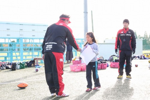 いやぁぁ(><)めっちゃ寒いですね(><)なんでも、日本の上空にはマイナス40℃の寒気が流れ込んでいるようです。今日は二十四節気で「大雪」にあたります。山の神様に敬意を表し、北風吹く中HALにて通常練習をおこないました。練習前に県大会でのMOM発表!!Cグレード紅一点Sちゃん!!BグレードSくん!!AグレードYくん!!本日より新たな挑戦の始まりです!!気持ちを引き締め、あの日の自分に負けないように!!張り切って練習に行きましょう!!冬季練習は運動神経系のトレーニングに力を入れていきます!!byヘッドコーチラダーを取り入れてアジリティートレーニングDグレードもお兄ちゃんの見よう見まねでグレード別練習≪Dグレード≫12月より年長(来春1年生)はCグレード武者修行の旅に出ました。ということでコーチと2人で練習です♪≪Cグレード≫Dキッズが入り大人数になりました。。。張りきって!!ショットガン!!身体の入れかたが難しい><Dグレード諸君!!ショットガンは・・・・こうやるんだよ!!はいったぁぁぁぁ!!こうですか??先輩!?オーバーの練習最後はD&Cで負けられない戦い~リレー~≪Bグレード≫タックル練習~ピンピン編~オーバー練習負けられない戦い~トライまで前へ~≪Aグレード≫21日のヒーローズカップへ向けて県大会の自分に勝つために。。。ブレイクダウンの攻防このグレードのコーチは全力です。VSコーチでAD≪Jr.≫基礎トレーニングショットガンオーバー!寒空の下、元気に練習をおこないました。来週は鈴鹿シティーマラソン&午後練習です。寒さが厳しくなると同時に、インフルエンザ・ノロウイルスが皆さんを狙っています!!ウガイ手洗いを忘れずに、健康管理に取り組みましょう!!追伸 本日の写真ですが若干見えにくいかもしれません。。。心よりお詫び申し上げます。