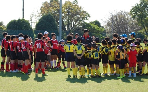 私たちと一緒にラグビーしませんか?ラグビーに興味があるという貴方!身体を動かしたいという君!!体力をつけたいという少年少女たち!!ラグビーは体が大きくても、小さくても足が速くても、そうでなくても運動が得意でも、苦手でも男の子でも女の子でも どんな人でも輝くことのできるスポーツです!!そして、ボールを蹴る・投げる・うける走る・捕まえる・倒す・押す・転がるetc...様々な運動を行います。また、体力づくりだけでなく協調性や自立心を養うことができます。是非、一度グラウンドに遊びに来てください!!詳しくはフリーページの生徒募集をご覧ください。