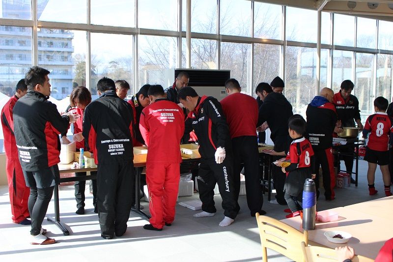 新春チャレンジマッチ第3部餅つき大会が、例年のように餅をつくことは出来ませんでした…今年は、餅ふるまい会と名前を変えて、みんなでお餅を頂きました。コーチみんなでおもてなし。中学生のお相手から小学生のチャレンジマッチ、そして餅ふるまいまで一日お疲れ様でした。お餅、おいしかったかな?そしてこの日は、オーストラリアに帰国する事になった Jk Tm Mc 3人の鈴鹿RS最後の日。リーダー陣、そして高学年を中心に生徒たちからのサプライズ。どこにいても、ラグビーを続けていればお別れではありません。鈴鹿RSの輪が世界に広がっただけ。いつまでも鈴鹿RSの仲間でありfamilyです。 See you again.3部構成でお送りした新春チャレンジマッチも、これにて「完」。