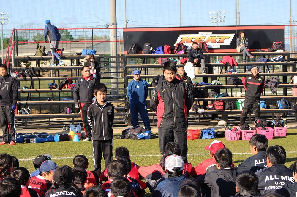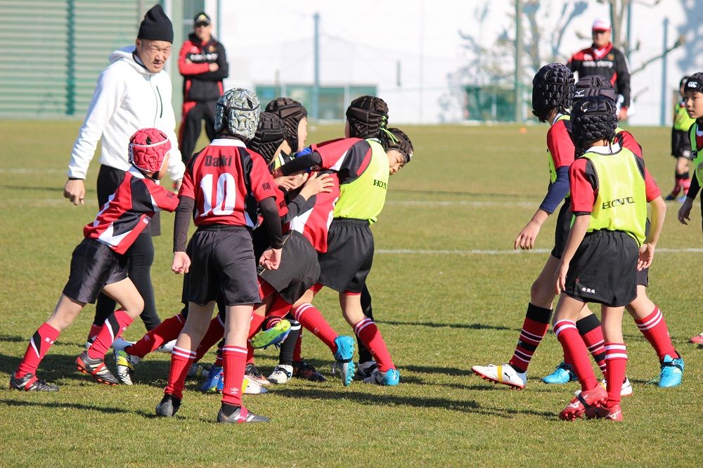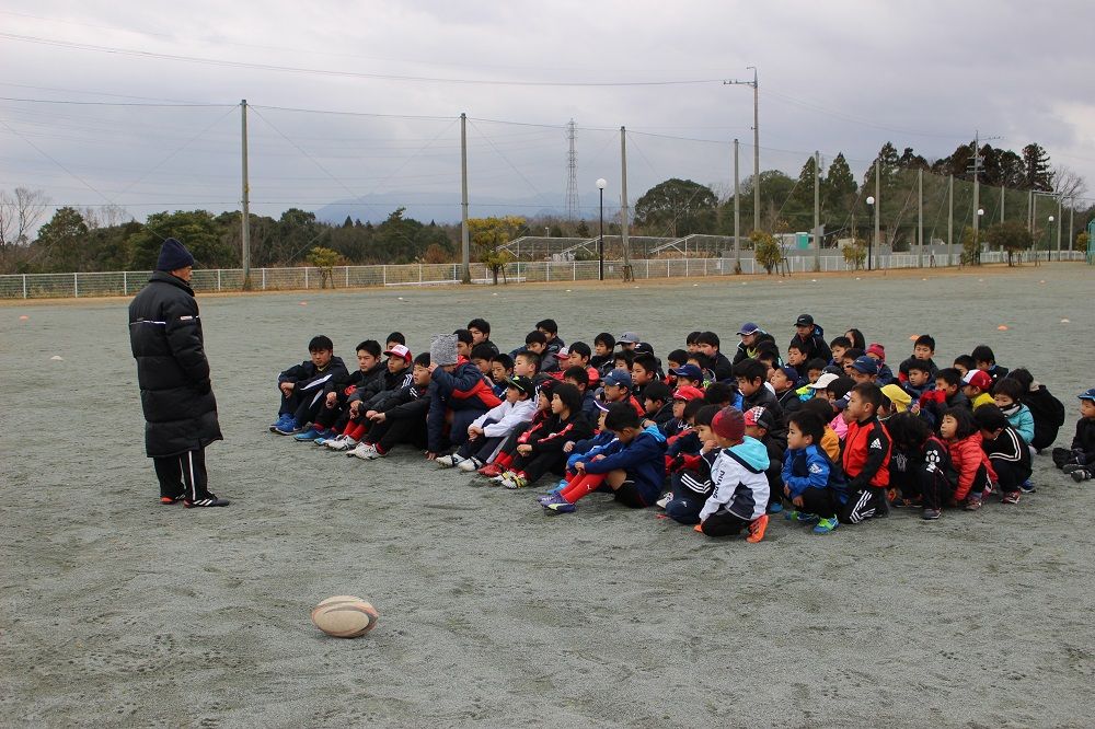 1月13日鈴鹿RS 冬の風物詩 新春チャレンジマッチ。幼児が1年生に1年生が2年生に2年生が3年生に3年生が4年生に4年生が5年生6年生に中学生がコーチにそれぞれのチャレンジ。の前に。体験に2名のキッズが訪れてくれました。中学1年生と6年生。また一緒にラグビーを楽しみましょう。リーダースピーチ。フレンドリーマッチの経験をみんなに。また一つ鈴鹿RSとして大きな経験をしました。さてさて、チャレンジマッチ。まずは 中学生vsコーチ のフルコートタッチフット。中学生のチャレンジと、童心にかえったコーチたちの姿をとくとご覧ください。ラグビーは幾つになってもいいものです。結果は…結果は関係ありません。(はい、コーチ陣の惜敗です…)小出しになりますが、今日はこの辺で。小学生(一部幼児)のチャレンジマッチはまた後日お届けします。